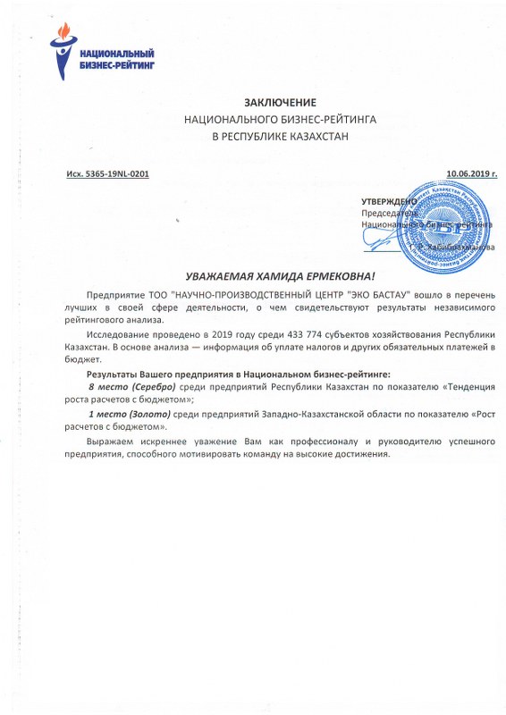 Результаты нашего предприятия в Национальном бизнес-рейтинге: